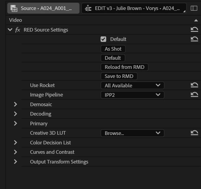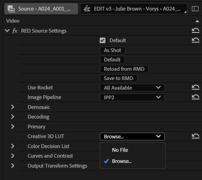 P: RED Source Creative 3D Luts missing from all R3D footage in all projects