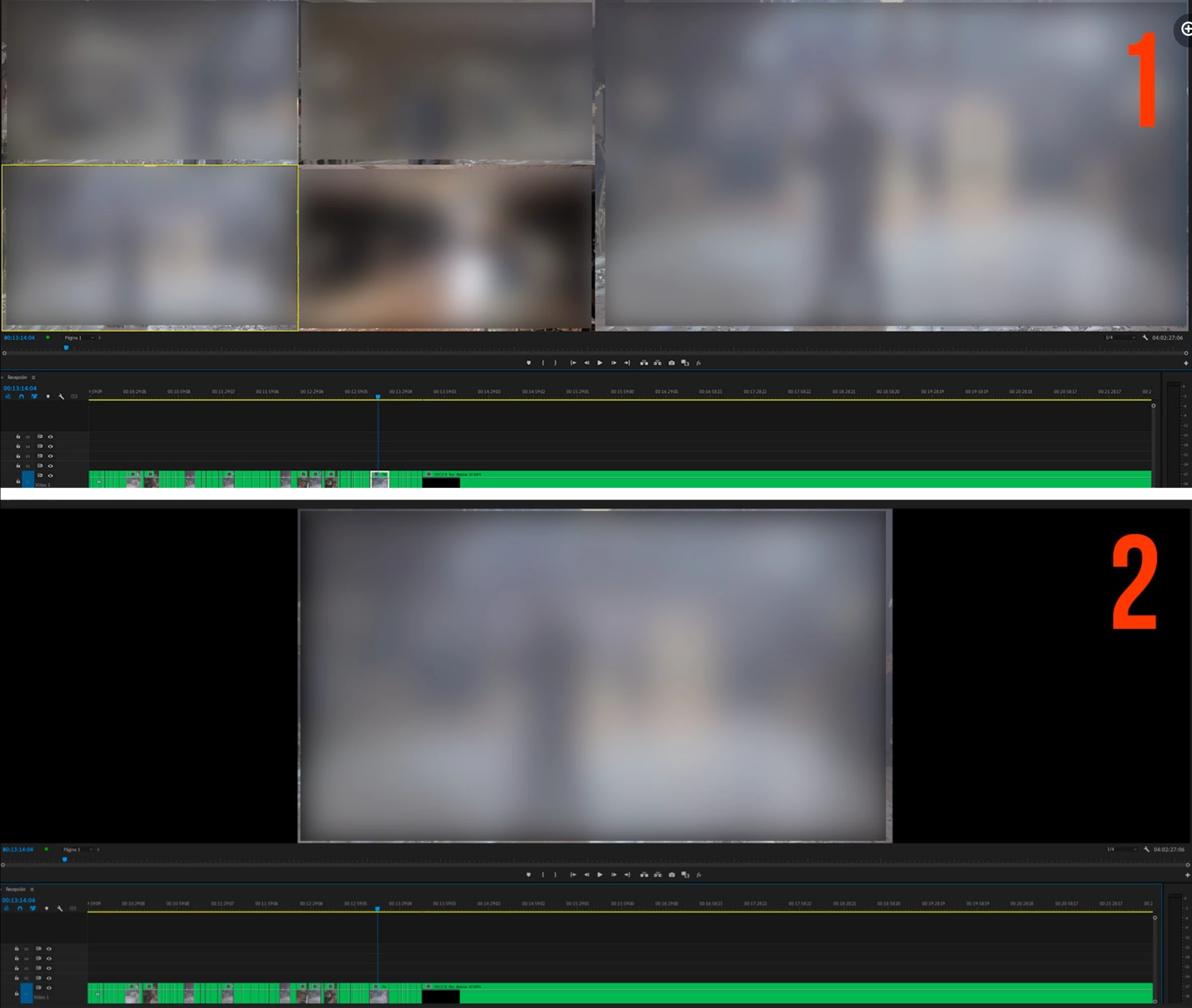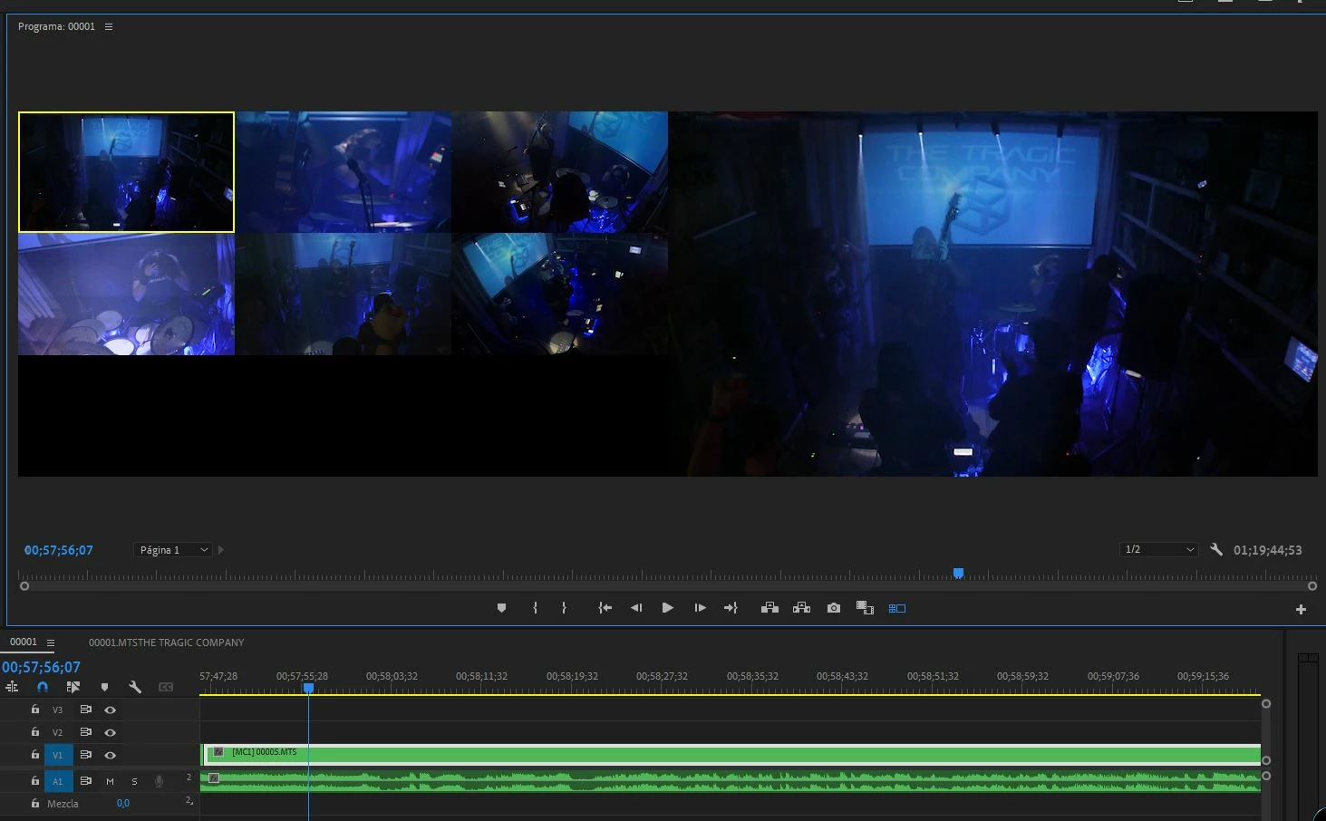 Utilizo la pestaña de conmutar vista multicamara, así tengo divido el monitor. A la izquierda, las imagenes de las cámaras para elegir plano, y a la derecha, la imagen final del montaje.