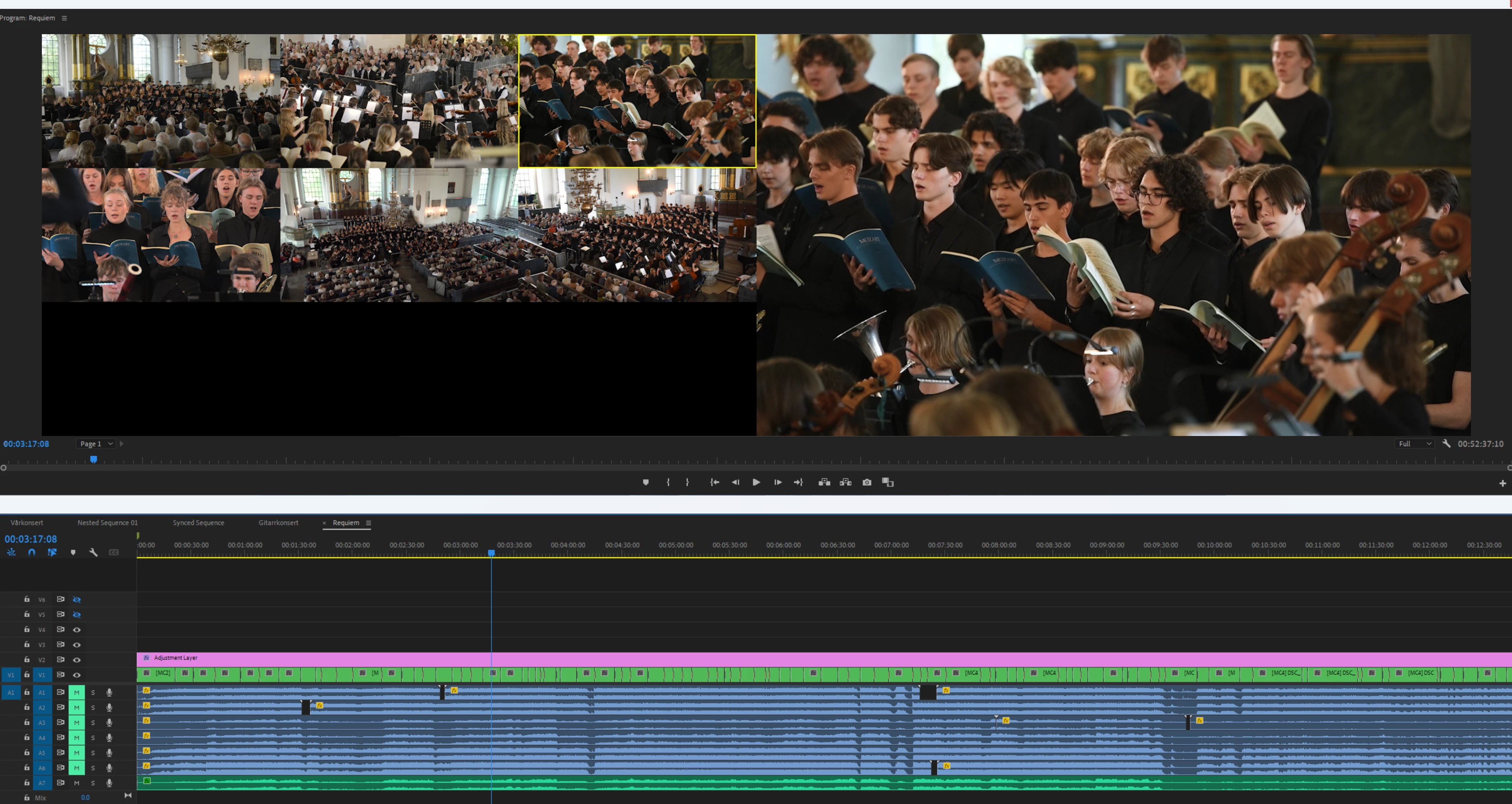 I can only bring them back by disabling and re-enabling the track on which the multicam clip is placed. It then plays without any issues, but whenever I make a cut—either by clicking on an angle or using the keyboard shortcut to cut to a camera—all the angles disappear again and I'm left with only the program preview of the selected camera. The strangest thing is that the info overlay of the camera angles remains on screen.