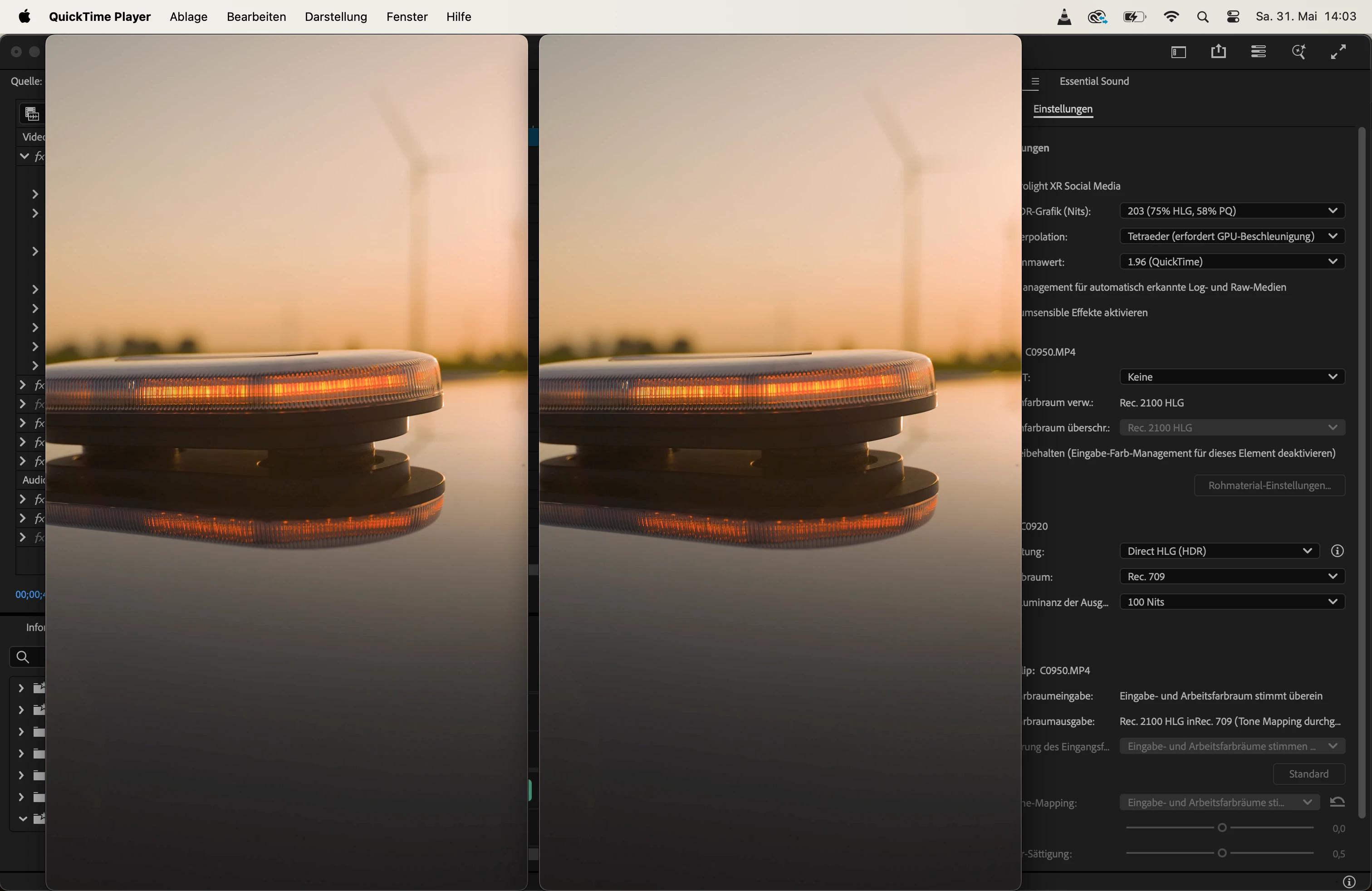 Display color management is onSet the "source clip" section on "use media color space" (so rec709)