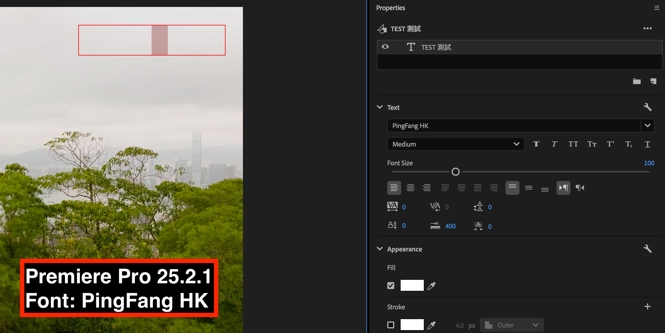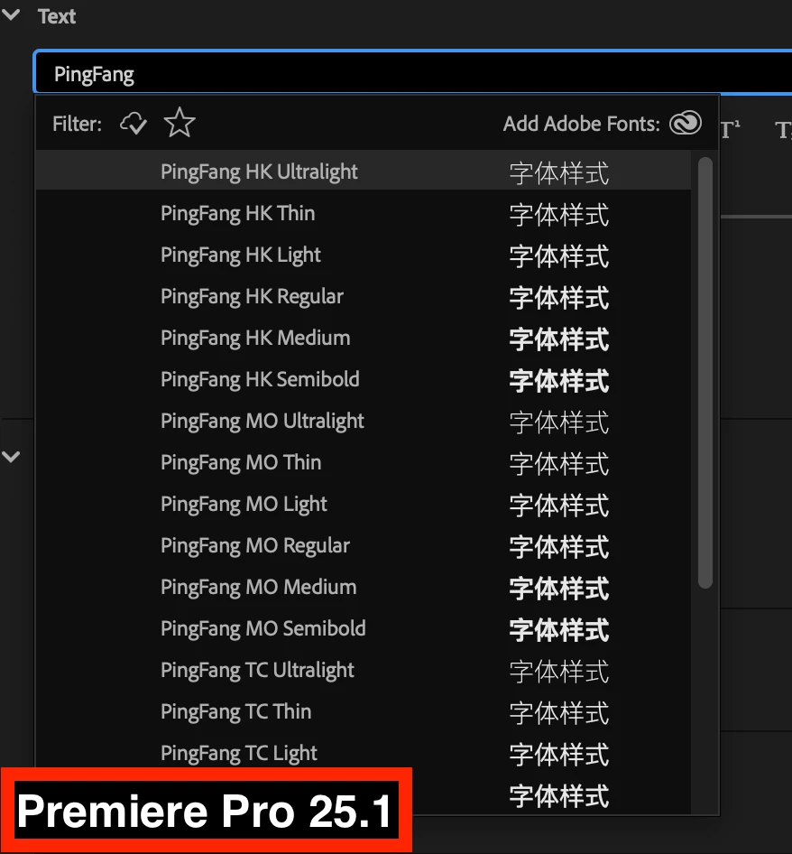 PingFang font cannot be displayed in Premiere Pro version 25.2.0 macOS Sequoia 15.4
