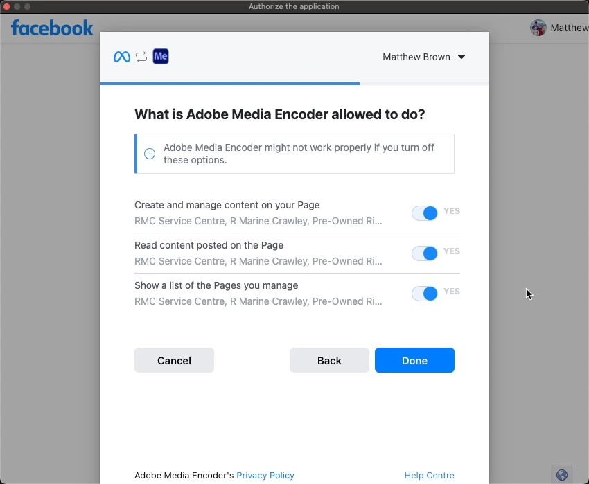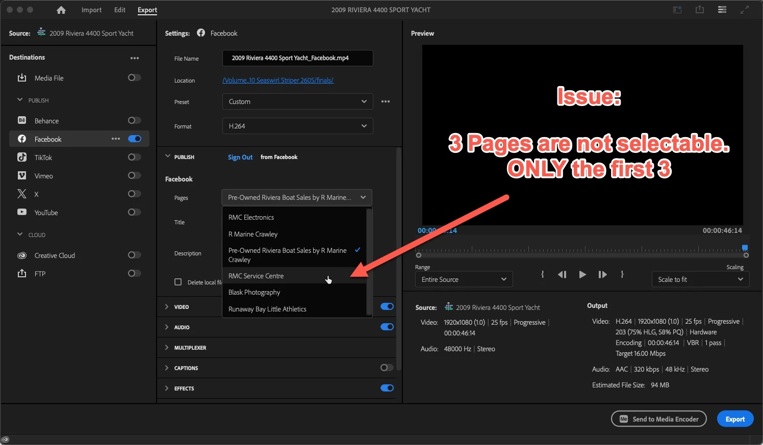 PP Export Issue - Sharing to Facebook Pages - 6 Pages showing in dropdown - I can only select 3