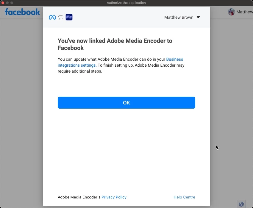 - Signing out of the Facebook connection on the export>publish screen.