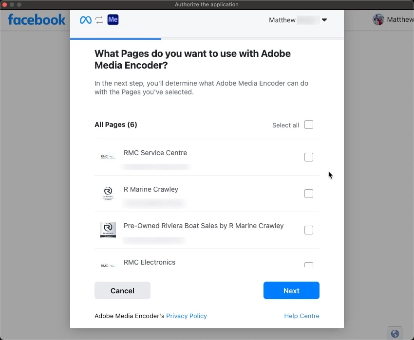- I attempted to select Facebook pages 4th, 5th and 6th, but it was the same issue.
