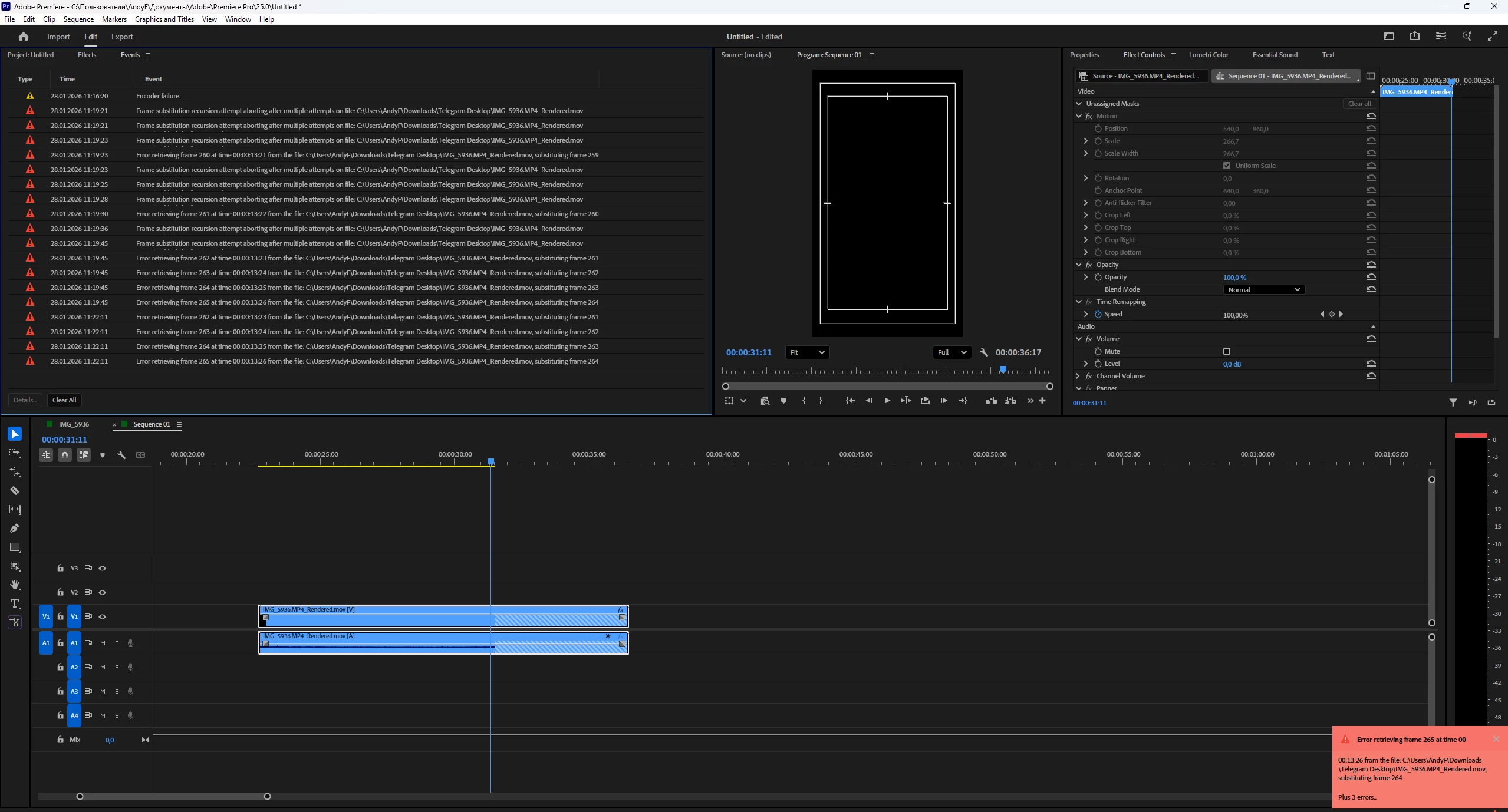 Pr 26.0 Render and replace issues