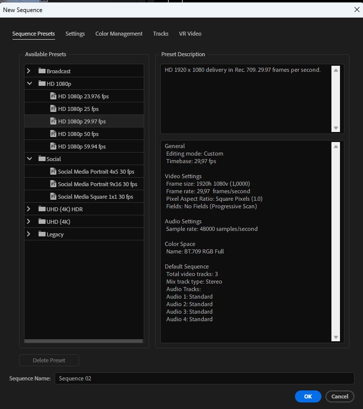 Different media, different resolutions. I use the sequence templates as a starting point:
