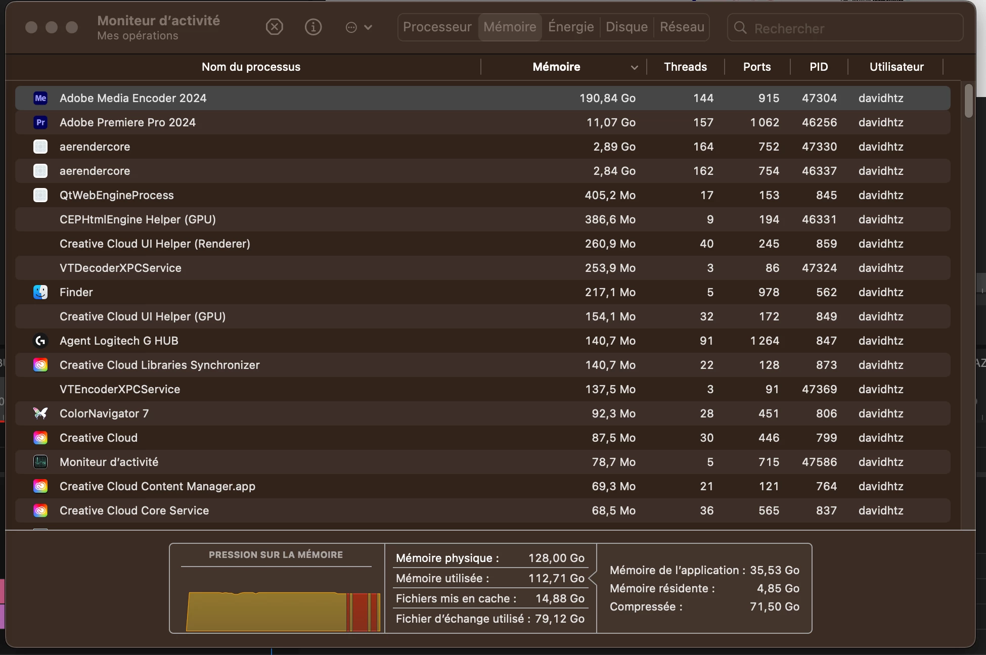 My mac has 128Go Ram and I setup 104Go for Premiere in the memory settings of premiere but I noticed in my activity monitor that. media encoder goes up to 190Go which I do not understand (should it not be locked at 104go ? )