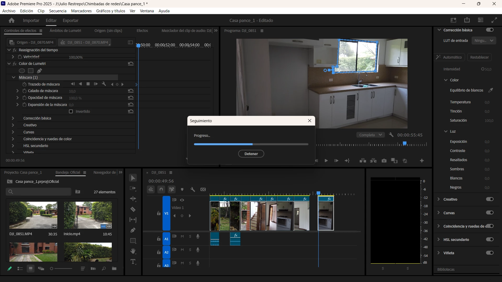 I made a mask tracking on a gaussian blurr and it comes well. But when i was going to do the same with a mask on lumetri color correction the loading bar of mask tracing stop on the mid part and it stays.