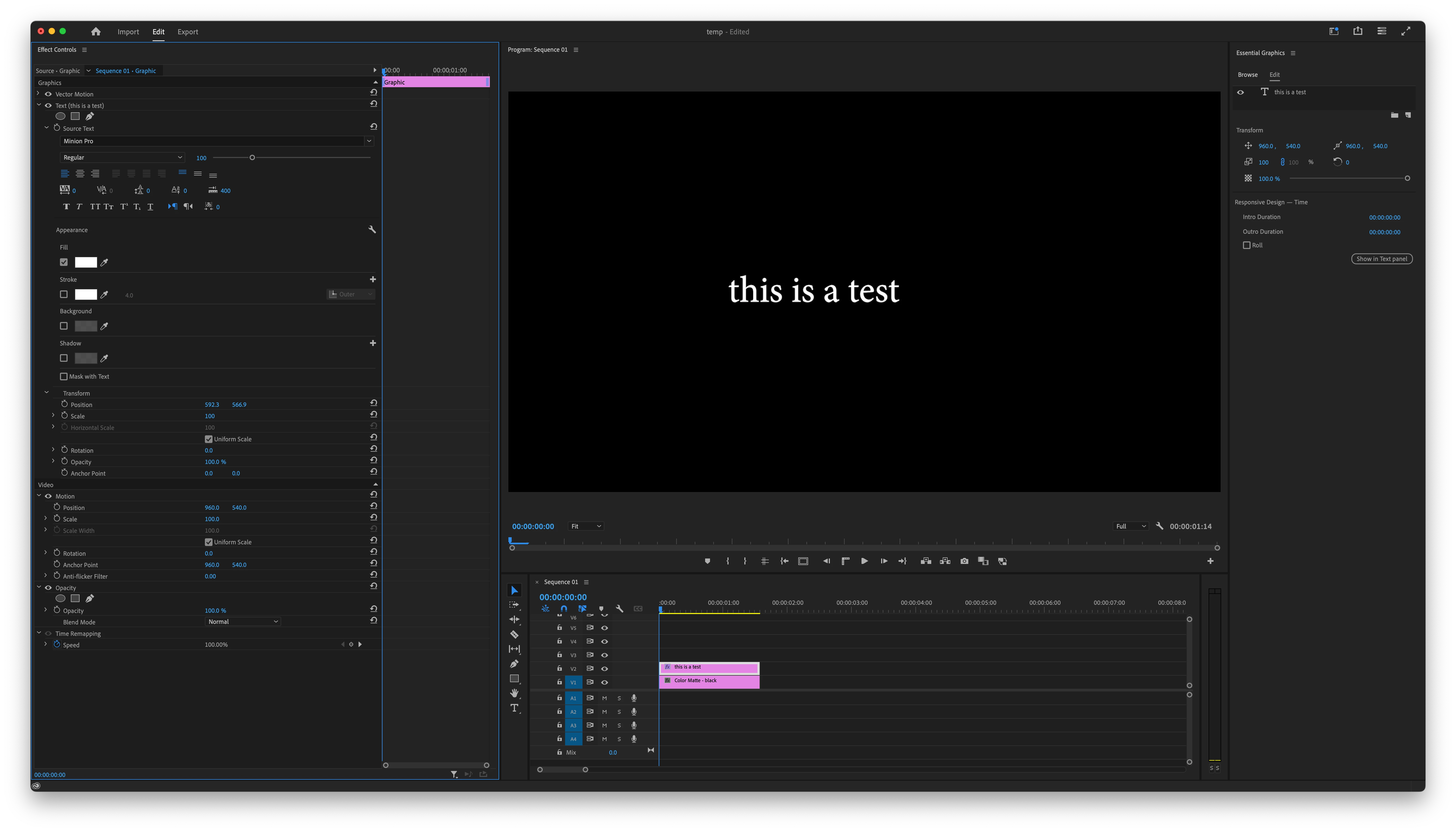 I'm demonstrating with a black matte layer, but I was able to recreate this issue on multiple computers using 3 other types of backgrounds, including ones not generated within Premiere.
