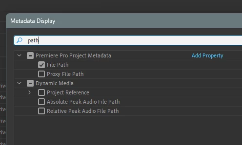 Premiere Metadata Display file path fields