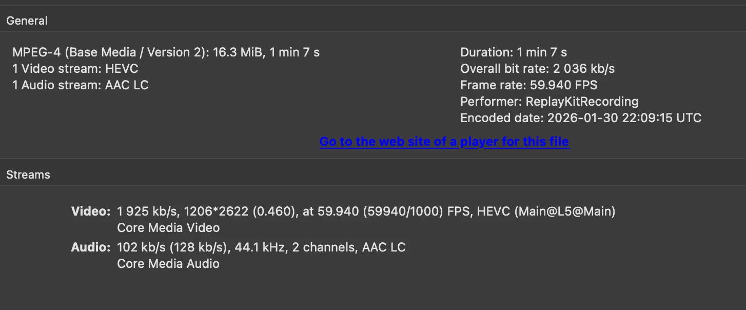 - Additional media: iPhone 16 Pro screen recording (MP4, 59,94 fps, HEVC)