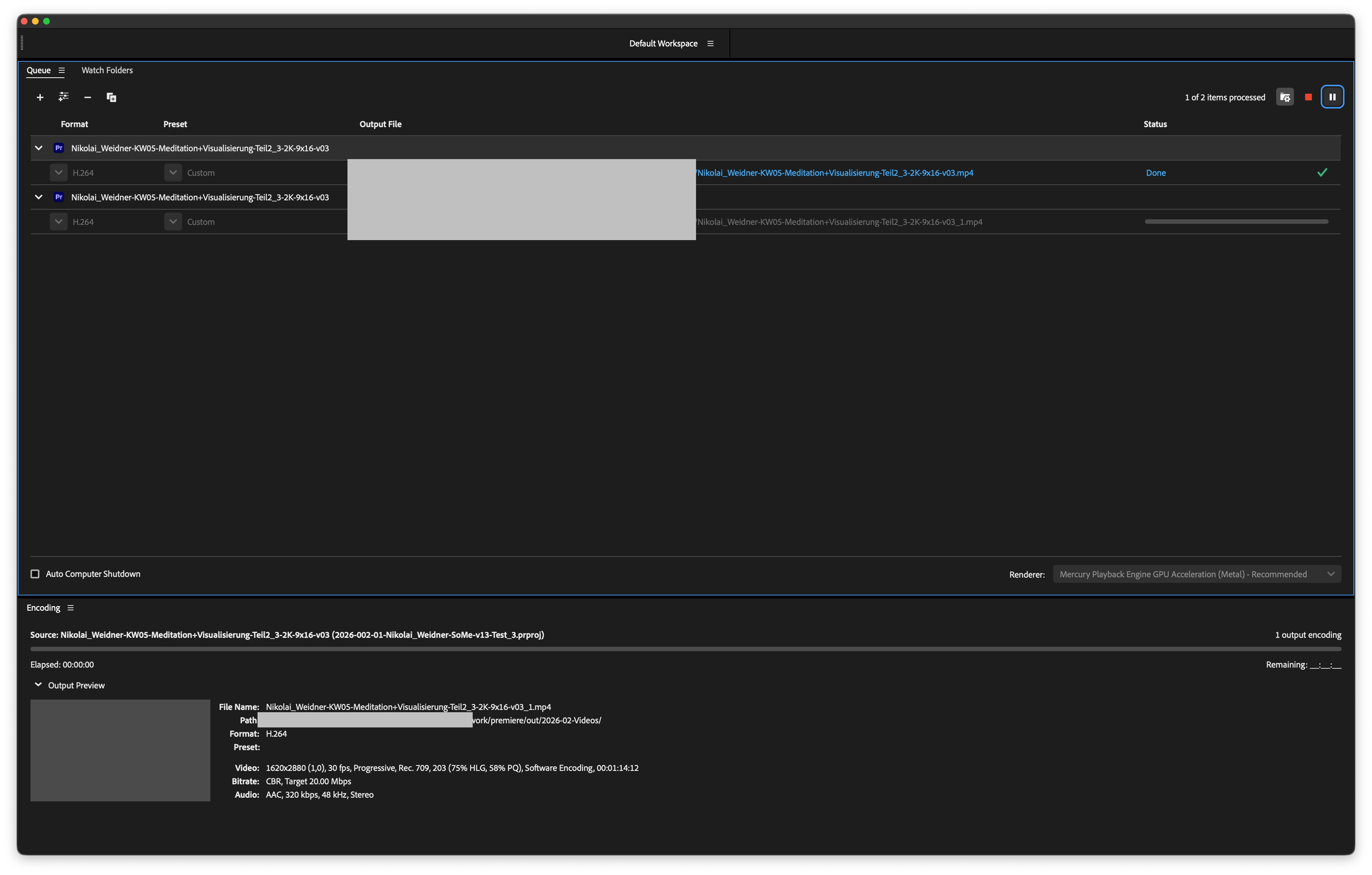 - Media Encoder works only after a fresh start, if Media Encoder is already opend it’s suck at 0% progress too “Remaining 00:00:00”