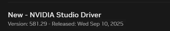 @Elmasguapo I also saw that a new version of game ready drivers was available today so I also downloaded it in hopes it would fix my issue, but it didn't. However, I did the express install instead of a clean install. I'm currently on Version 581.29 Game ready drivers and still experiencing the issue.
