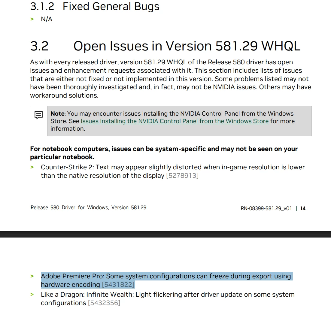 The 581.29 release notes describe that freezing during export is an unsolved issue for some system configurations.