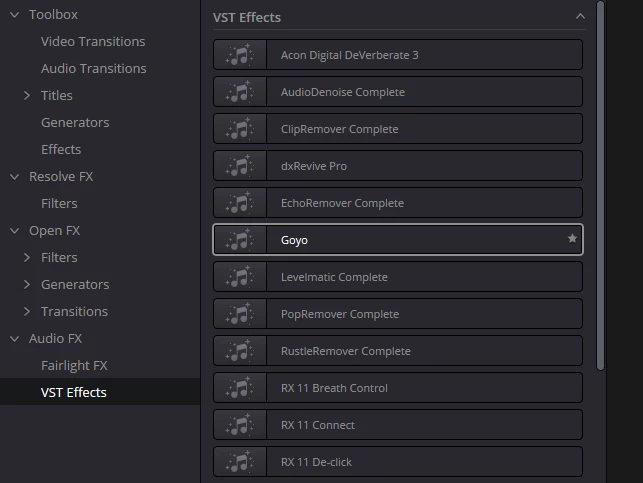 And here’s the plugin not seen by Premiere Pro inside Davinci Resolve (Supertone is there too):