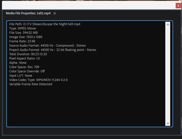 I've attached a picture of the glitch, along with a picture of the video files' properties, according to Premiere Pro.