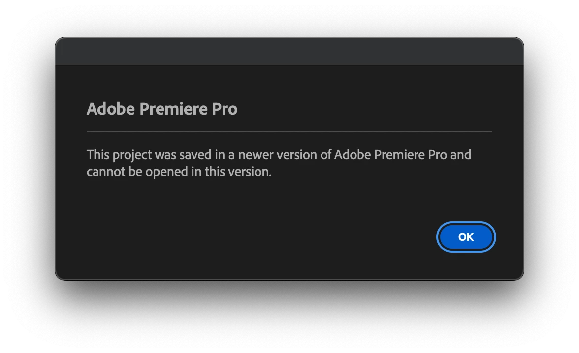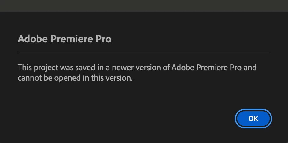 "This project was saved in a newer version of Adobe Premiere Pro and cannot be opened in this version"