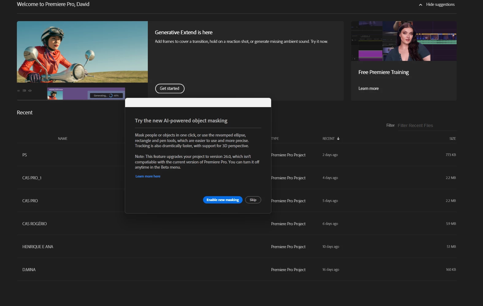 A bug caused Premiere v25.6.0 to prompt customers to enable Object Masking even though it is not yet in full release. Object Masking (and our yearly major version update) changes the Premiere project file structure such that it can only be opened in v26, which is only available in public beta. Turning this on caused projects to save in the newer v26 project format, even though users were still technically on the v25 release line.