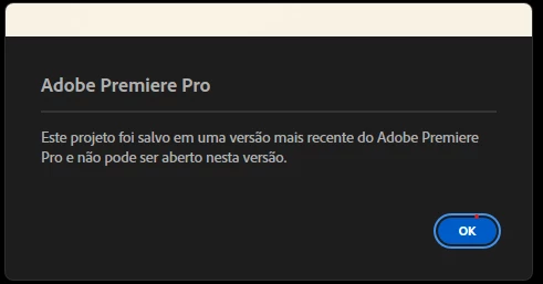 Preciso de ajuda. O meu premiere está apresentando erro ao tentar abrir a versão de um projeto que salvei ontem a noite. Ocorre que não houve atualização de dowgrad, entretanto o porjeto informa que foi criado em versão mais recente.