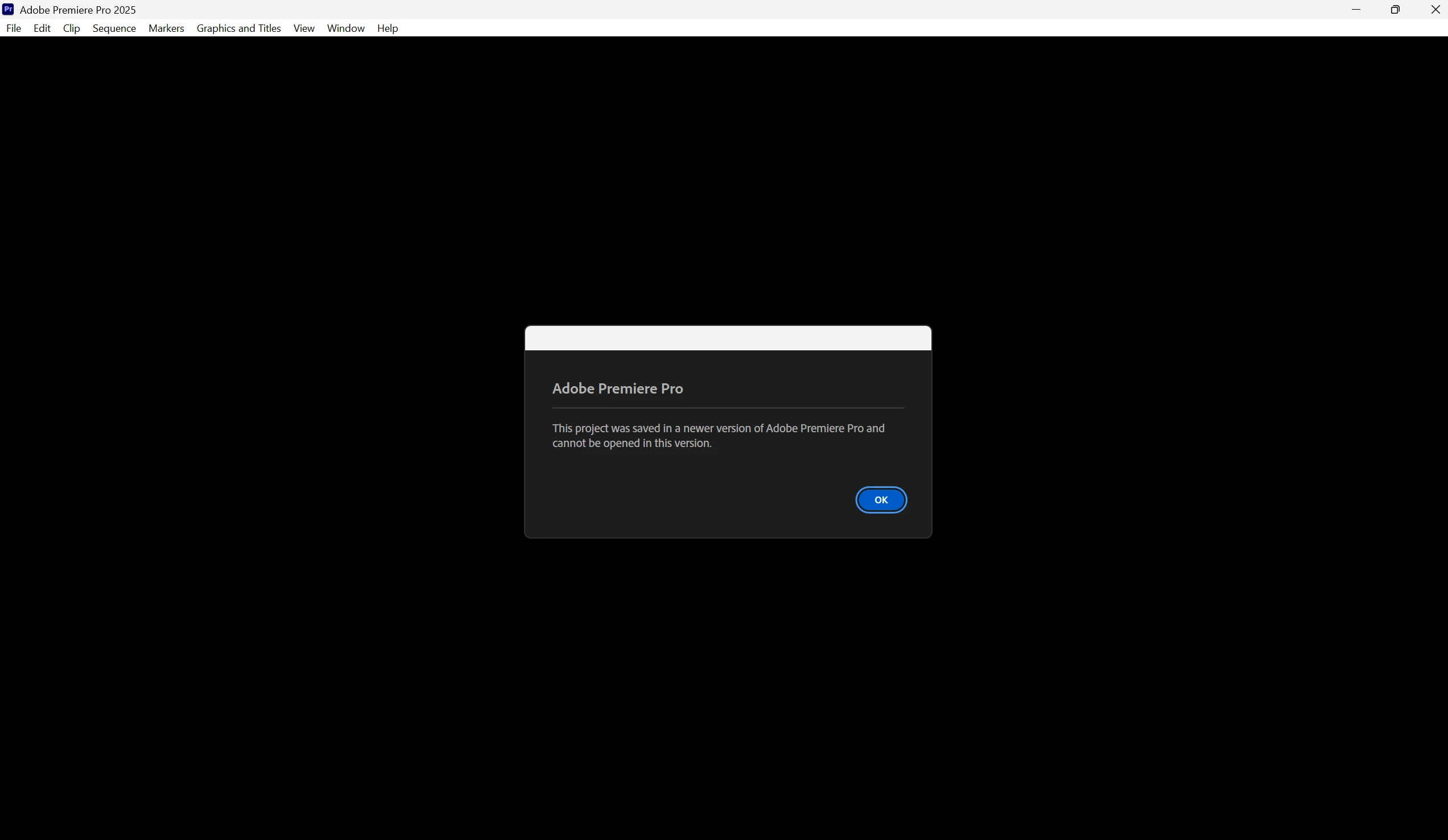 Premiere projects saved in v25.6.0 cannot be opened in other v25.x versions