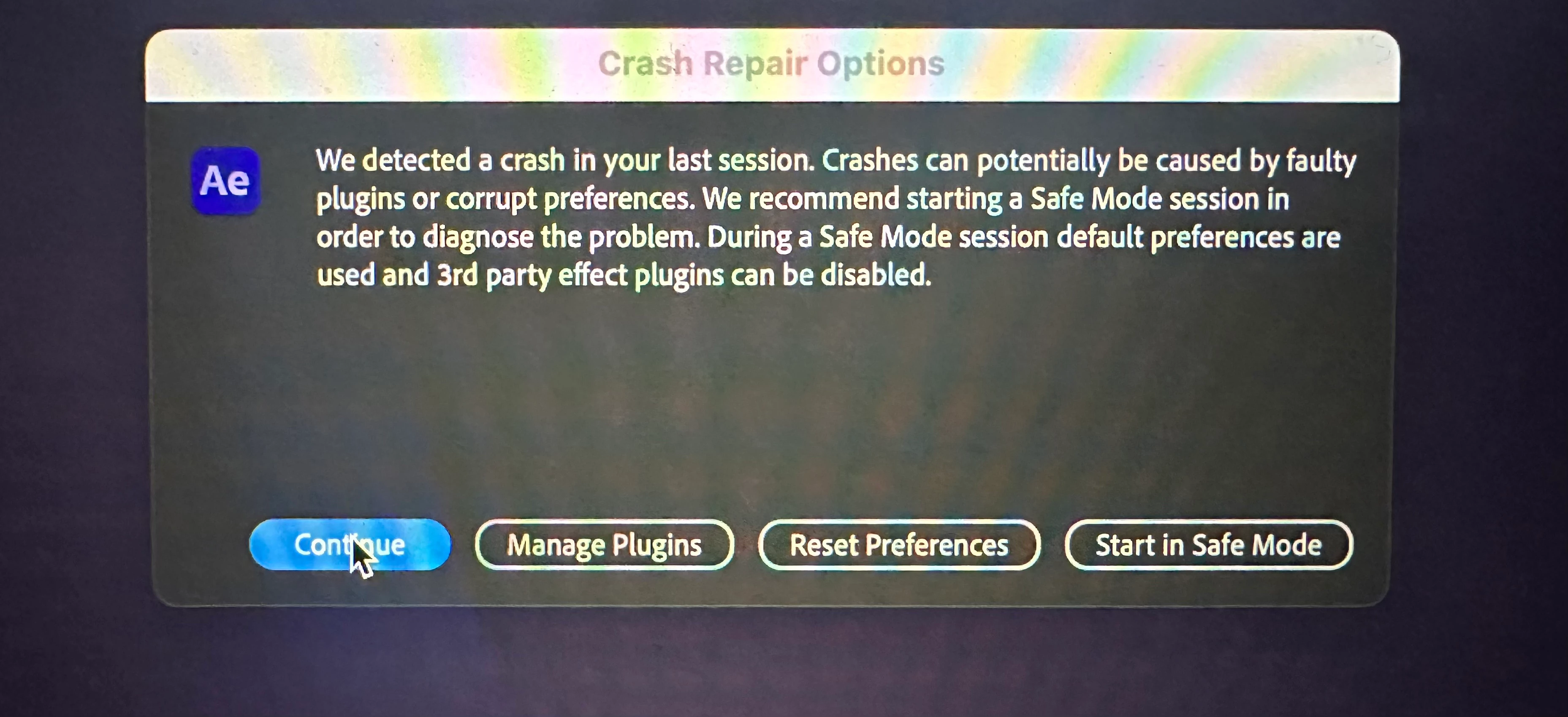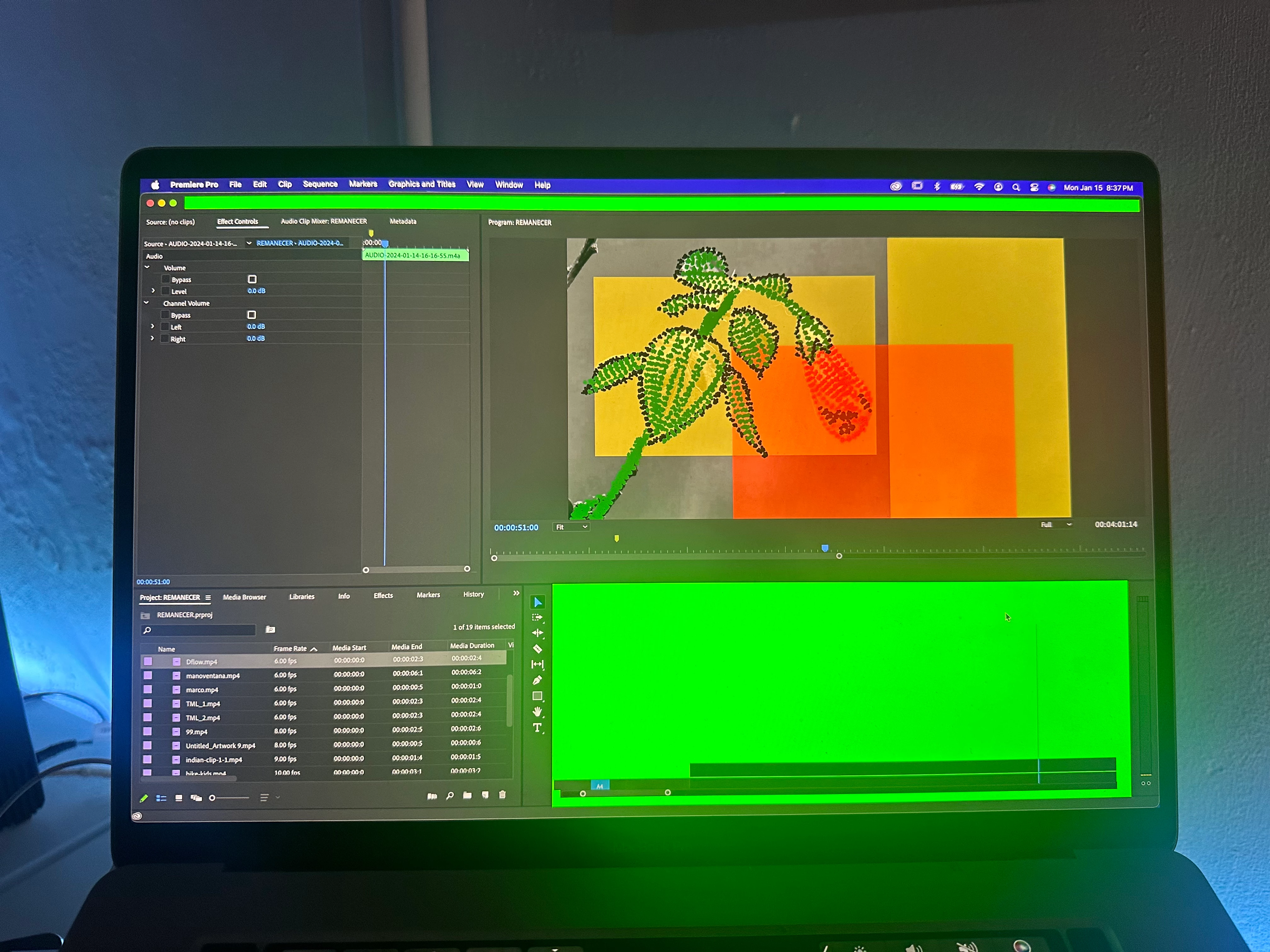 Ayuda! LLevo varias semanas con este problema y no logro encontrar solución.. Premiere se queda colgado aparecen colores como en la imágenes que adjunto y se cierra reseteando la computadora, esto trabajando con un proyecto muy sencillo que no debería sobrecargar para nada el ordenador. También me ocurre con After Effects.