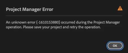 Project Manager error code -1610153880