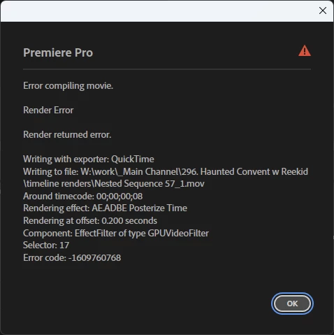 3. I haven't completely locked down the pattern yet, but I seem to be running into it with sapphire's UltraGlow (latest version) a lot, but as noted previous versions of premiere do not encounter the issue with the exact same sequence, and disabling gpu rendering also results in no error