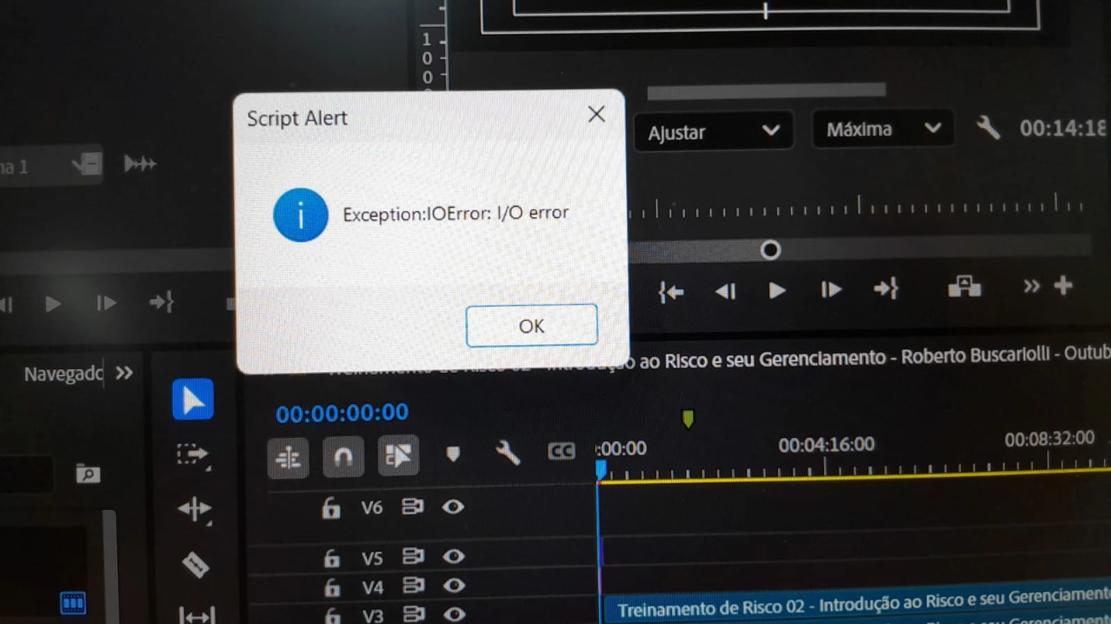 Alguém consegue me explicar o que pode estar acontecendo para aparecer este erro? É um colega que estou ajudando ele, então não consegui ter muitas informações, mas sei que ele não utiliza muitos plugins, mas utiliza uma animação em After importando arquivos mogrts.