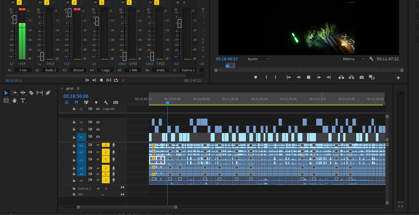 meu premiere esta sem som, mas quando abro um novo projeto ele fica com som nomal, e devo te apertado algum botão que tirou o som do meu projeto e não sei qual