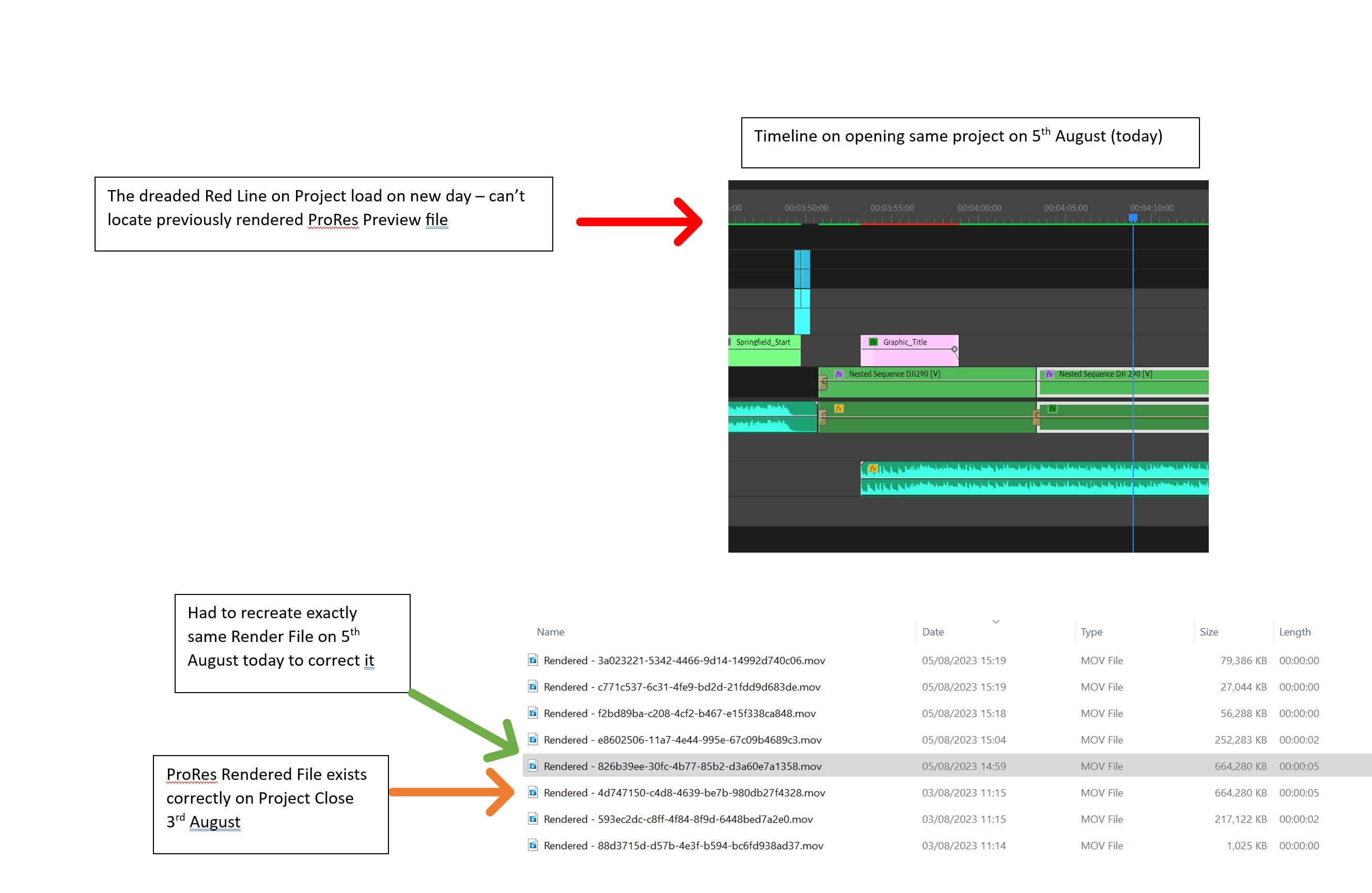 Kevin noted above he is losing pre-rendered Pro_Res 422 preview files with captions above.