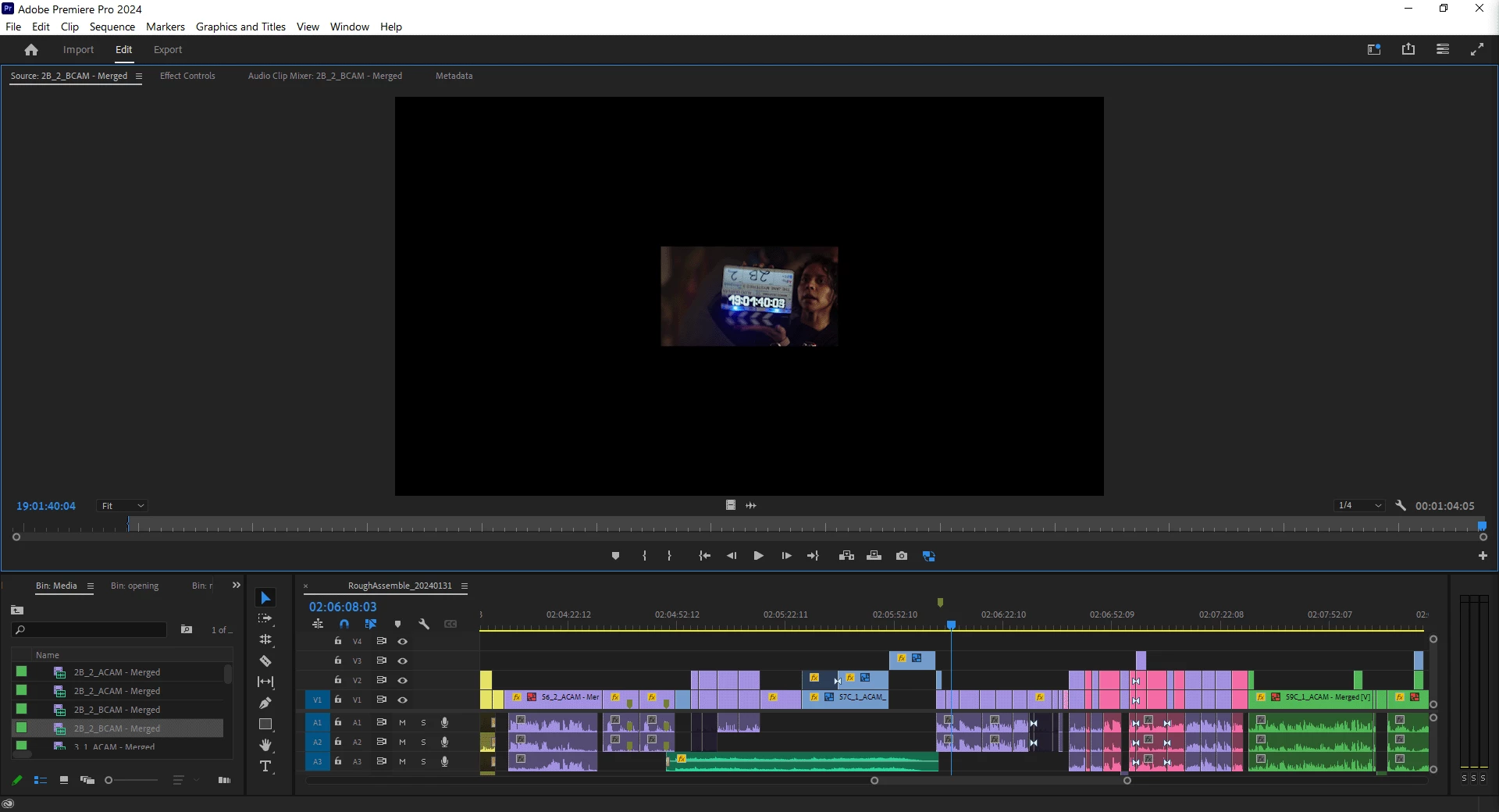 We work with usually 12-14 days of footage with around 5-10 scenes on each day. Footage is synced on set by the DIT with both R3D and proxy files attached. Footage is then edited offline by the post team.