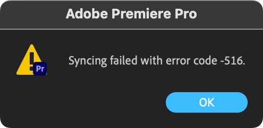 On my desktop (Mac Studio M1 Max), I opened Premiere to sync my settings I uploaded 2 days prior from my laptop (Macbook Pro M1 Max). But I was greeted with an error message: