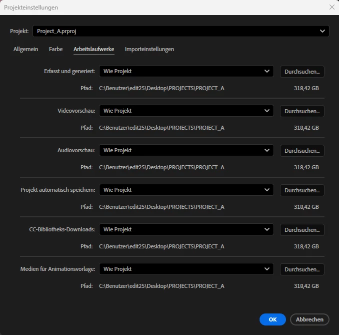 - Issue – After importing sequences from Premiere project "B" into existing Premiere project "A", the project save path (autosave, capture files, etc.) of Premiere project "A" is redirected to Premiere project "B"