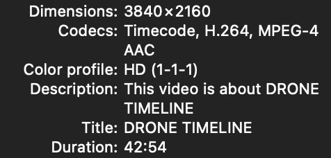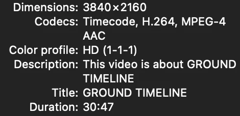 Movie contains 1 video track(s), 1 audio track(s), 0 closed caption track(s), and 1 timecode track(s).