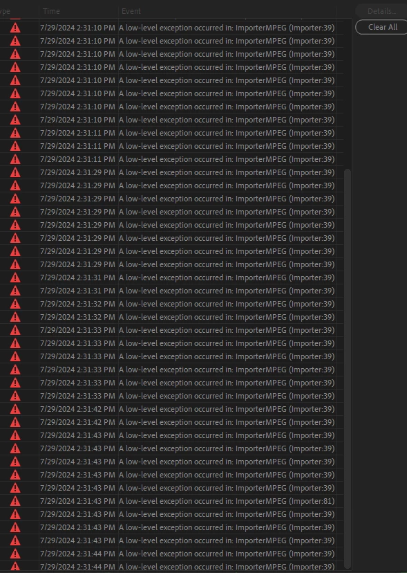 As I was importing some 4k - 59.97fps (around 5 - 20 seconds in length each) footage to a current project I was working on, I continually encountered an issue where during the importing process, Premiere would start acting very strange, my monitors would flash, and the application would need to be forced to quit. After some investigation via my task manager, I managed to diagnose that my system was using 14 gigs of RAM to import the footage, however, I had only allocated 8 to the application. Even importing the footage in smaller batches of 10 - 20 clips would cause issues in the importing process. Each time I would attempt, premiere would throw a flurry of seemingly random errors (they would all be different every time).