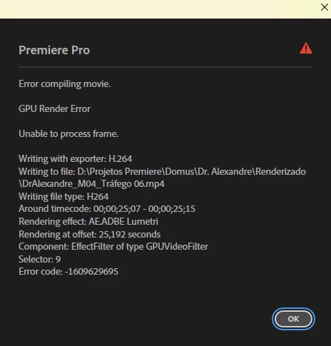 Intresting discover, with lumetri but no Look at creative tab, the video rendered.