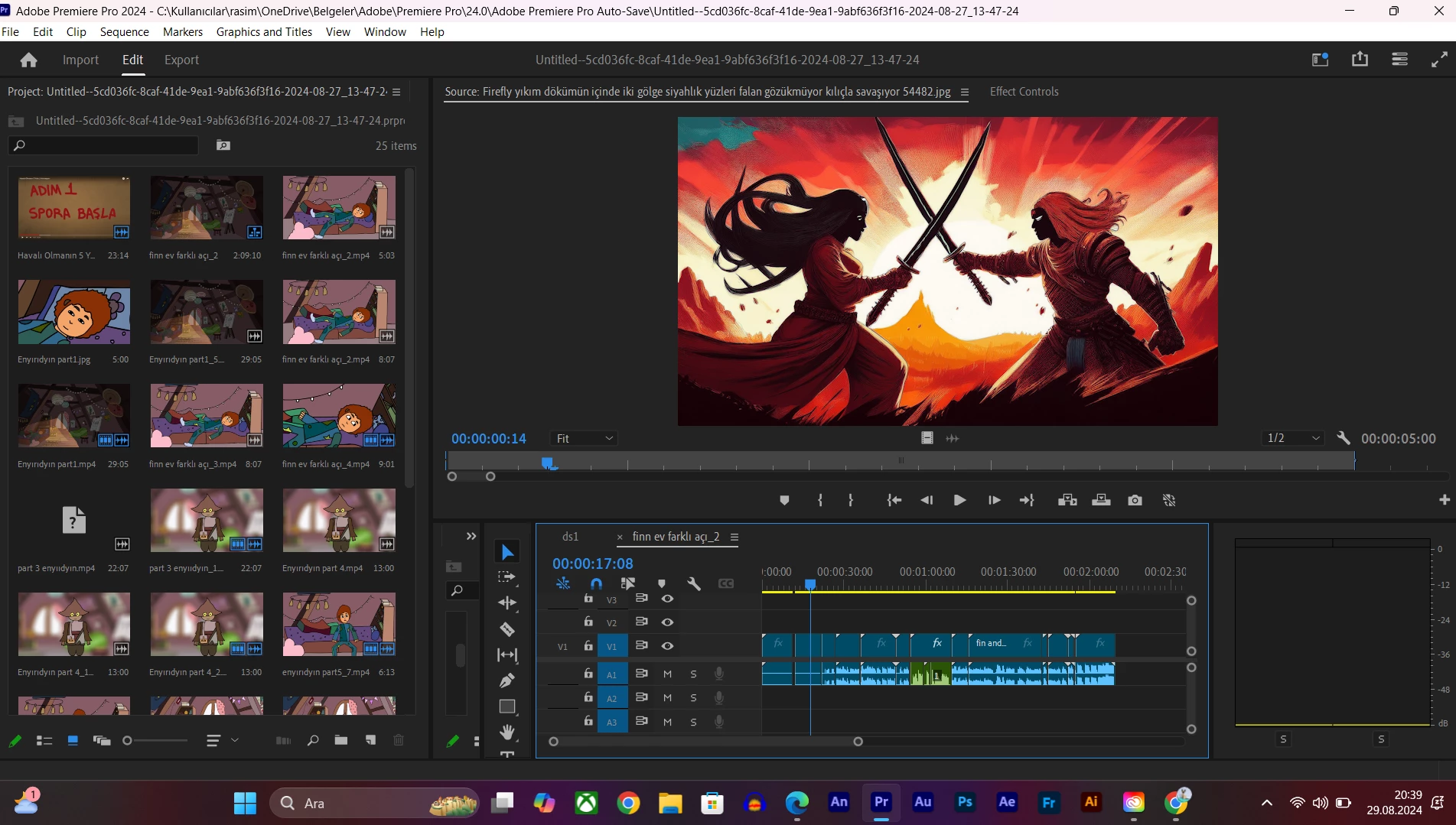 Yardımın için teşekkür ederim! Ama ben de chat gbt'den bu cevabı aldım ve bu düzeltme işe yaramadı. Aslında demek istediğim şu ki, hangi dosyayı açarsam açayım, sadece bir dosya açılıyor. Normalde tıkladığım dosyada diyelim ki müzik düzenliyorum, diğerinde ise animasyon videolarımı düzenliyorum. Müzik düzenlemede dosyaya tıkladığımda animasyon düzenlediğim dosyalar çıkıyor. Resimde fark ederseniz, soldaki dosyalarda animasyon var, ancak zaman çizelgesi ve görüntü farklı bir dosyaya ait. Aynı dosyada sıkışmış iki dosya gibi. Net miyim bilmiyorum ama uzun zamandır bu işi yapmaya çalışıyorum ve bir sonuç yok.