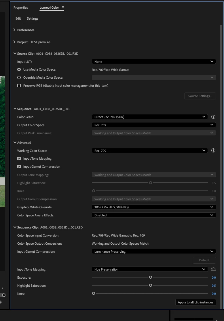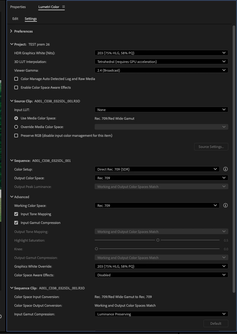 When importing R3D files from RED Gemini in Premiere 26, the Output Transform Settings change the gamma curve from Log 3G10 (which is what it's meant to be) to BT 1886