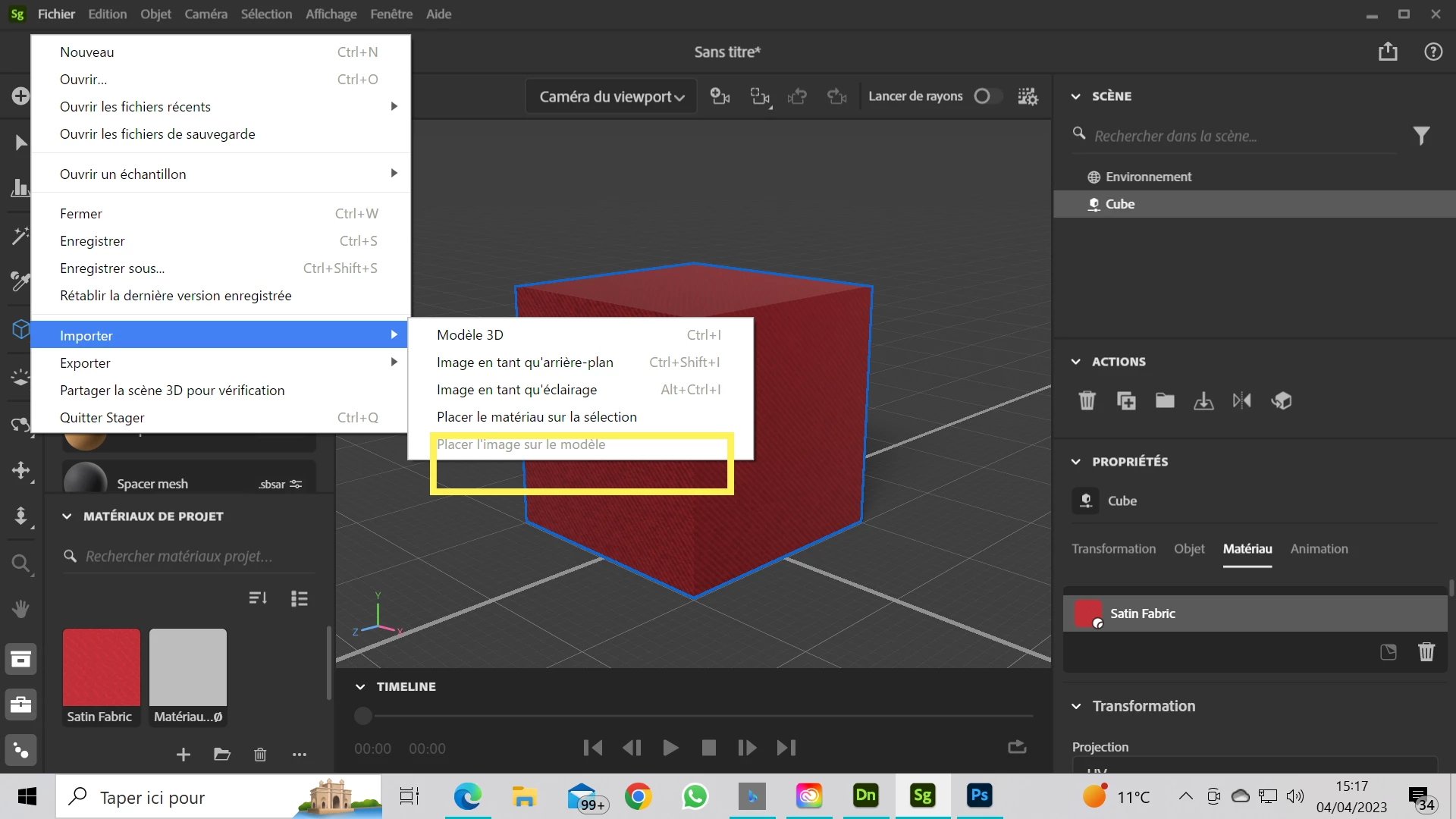 I try to apply a picture on a simple 3D model (a cube)