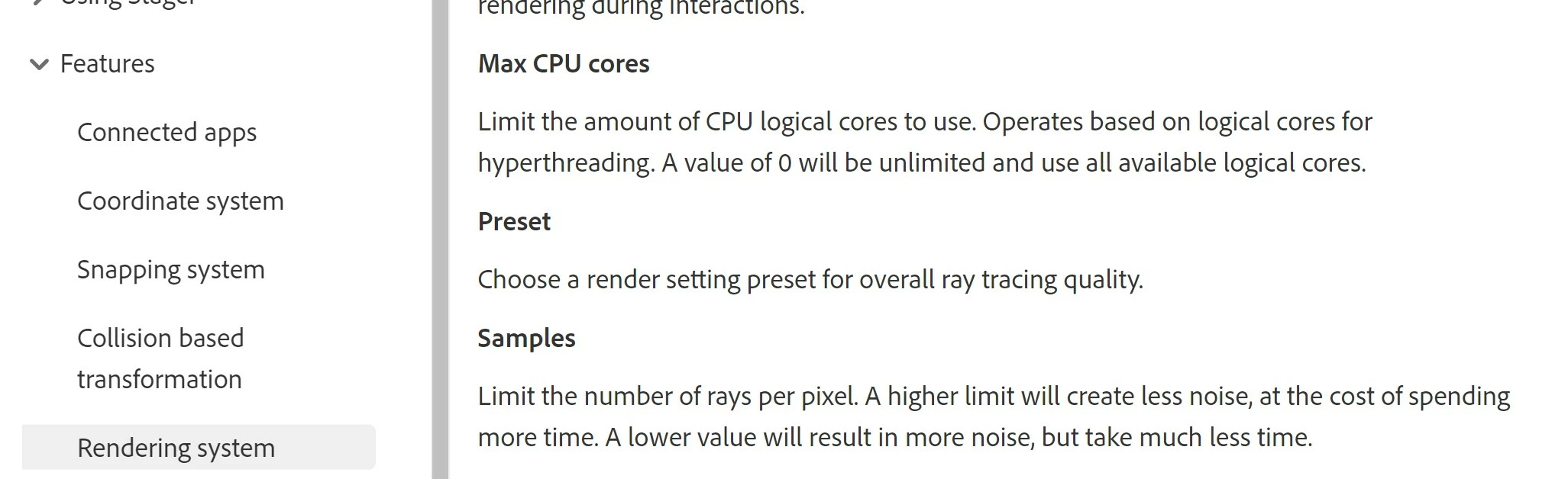 I want to use the my CPU to render as a work around for the GPU max vram bug but can not find it. I can turn of the GPU button in the rendering settings but I can not find the CPU Max cores dialoque as listed in your documentation (see window pasted below).