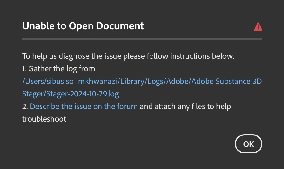 When I try open my 3D model, I get an error message below. I was able to open the model earlier but im now unable to. I've also attached the log form.