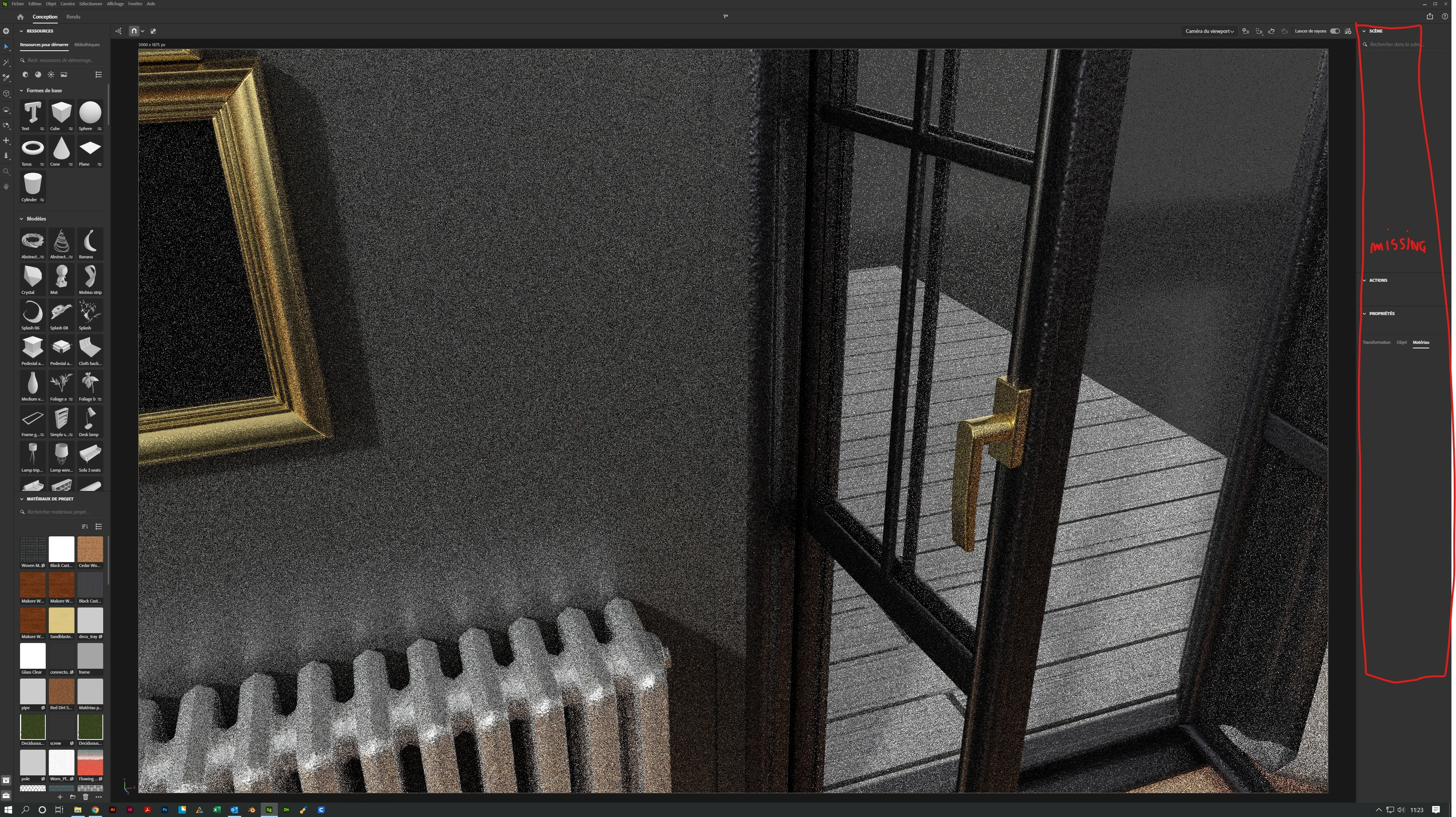 Since my last save, I'm not able to see the scenery assets, nor actions or properties menus on the right side of the screen (see shot), and in rendering mode i'm not able to click on the rendering button.