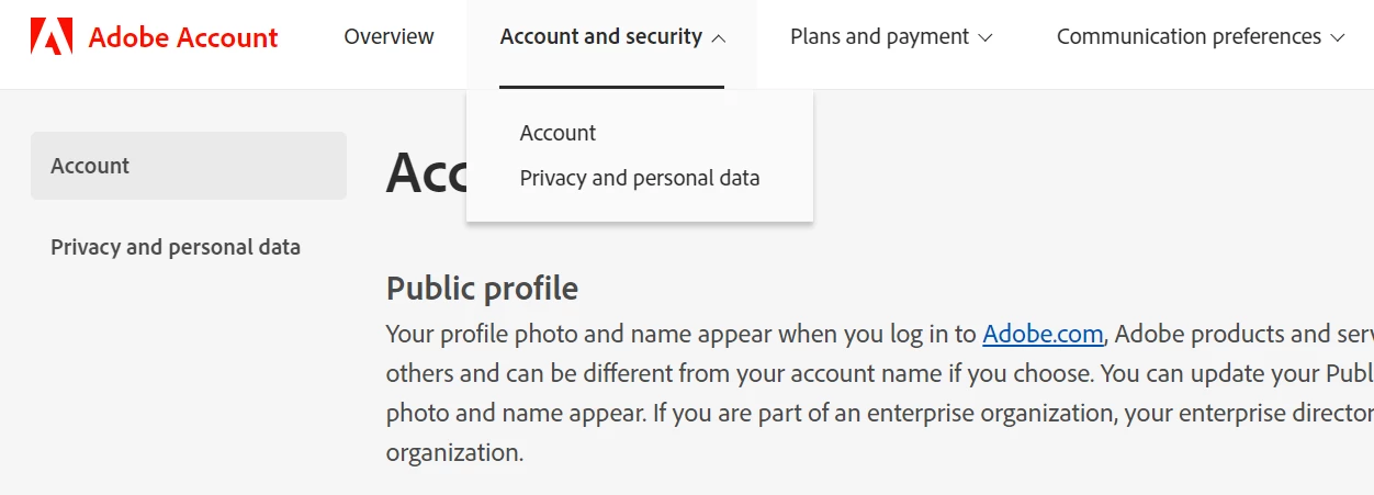 What's missing on that dropdown menu is "Sign-in and Security." I assume that's because you have a student account that is under the control of your educational institution. Logins are controlled by the account administrator.