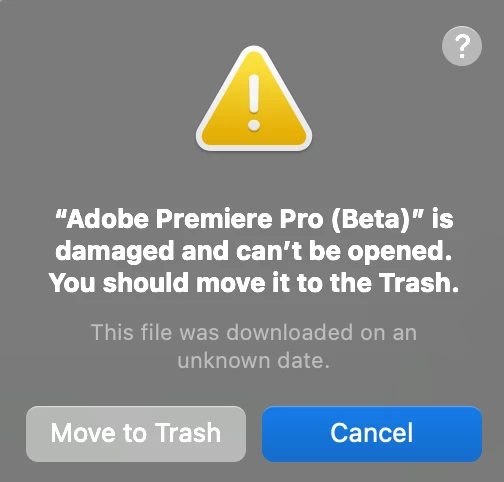 Adobe Premiere Pro (Beta) is damaged and can't be opened