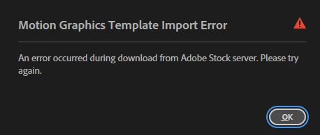 Adobe Stock Server - error trying to download a graphic template in Adobe Premiere