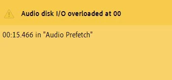 Files are on NVMe storage so it's not drive speed. Plus I didn't have this error on 23.4 for the same files, just in the Beta. To a lesser extend I get the "Audio disk I/O overloaded" pop up.