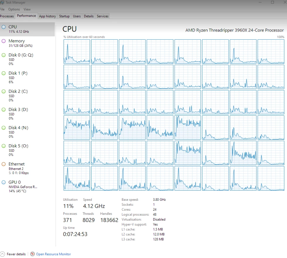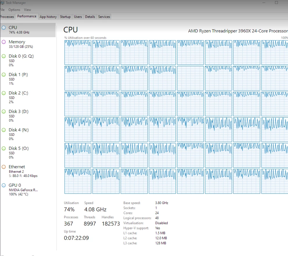Beta 23.0 very high CPU use for Threadripper 3960X, playback fails