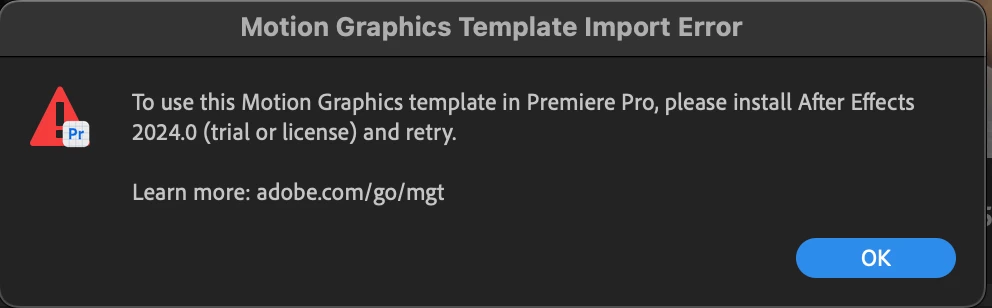 Beta v24.2.0.34 - Motion Graphics Template asks for After Effects 2024.0
