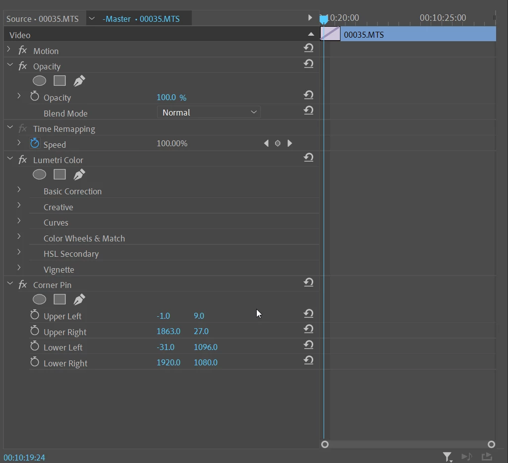 Corner Pin is applied to the second 1080p clip.
