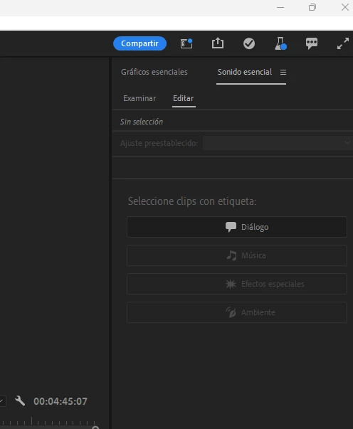Cada vez que quiero entrar al apartado del menú de sonido esencial, y doy clic para identificar un audio como música o diálogo, premiere se cierra automáticamente de golpe